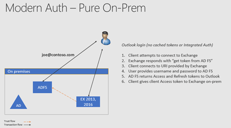 Dès Décembre 2017, le produit Exchange 2016 sera compatible avec l’authentification moderne car celle-ci sera apportée par la mise en place d’un Rollup Update.