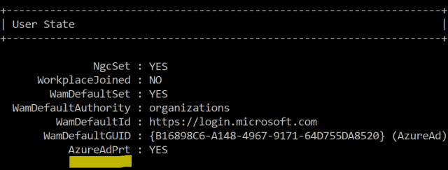 Dans la section « Etat utilisateur », vérifiez la valeur d’AzureAdPrt qui doit être OUI.