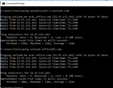 La plupart du temps, les problèmes de connexion d’un client Outlook vers Exchange Online, proviennent de deux facteurs que sont la résolution DNS et les services de proxy. Ainsi la première chose à faire, et de vérifier depuis le poste de travail en question si la résolution DNS vers les services Office 365 est correcte et si les services proxy ne vous empêchent pas de vous connecter à l’environnement Exchange Online.