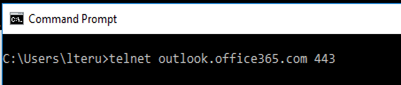 Si la résolution de ces deux noms ne fonctionne pas alors il s’agit d’un problème DNS. Si cette résolution fonctionne, nous allons vérifier que la connexion via le protocole https peut s’effectuer. Pour cela nous allons utiliser le programme client Telnet qu’il vous faudra peut-être installer sur la machine Windows. En utilisant les deux commandes suivantes, vous allez tenter depuis le poste en question une connexion sur le port 443 utilisée par le protocole https vers les points de connexion Exchange Online.