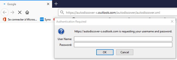 Selon votre environnement, et selon l’emplacement des ressources auxquelles Outlook va tenter d’accéder le diagnostic sera plus complexe à établir. En effet dans les environnements hybrides il n’est pas rare de constater qu’une partie des ressources de type boîte aux lettres soit répartie entre les deux environnements Exchange Online et Exchange sur site. Dans ce cas, le client Outlook devra vraisemblablement se connecter sur ses deux environnements et il est possible que vous constatiez des fenêtres d’authentification liée spécifiquement à un environnement bien déterminé. L’objectif de ce document est donc de vous familiariser avec ces processus de connexion pour vous puissiez déterminer quelle en est la cause.
