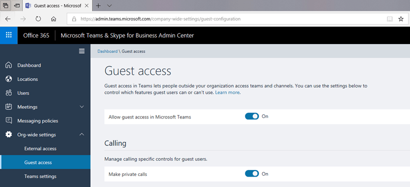 L’activation se fait directement dans l’espace dédié à Team et à Skype : https://admin.teams.microsoft.com/company-wide-settings/guest-configuration