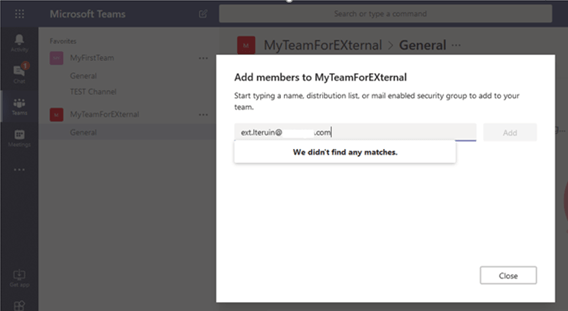 Après avoir activé cette fonctionnalité nous avons remarqué qu’il n’était pas possible d’inviter quelqu’un car team ne reconnaissais pas cette personne comme externe, alors que celle-ci possédait bien un compte sur un autre Tenant 0365