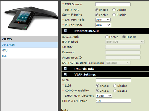 One of the possible options is then, to use the discovery functions of Vlan ID. The VLAN ID Discovery function allows the device to automatically determine the voice VLAN ID using DHCP. This is achieved by using an Option in the DHCP service. Once the Voice VLAN ID is acquired, the phone will use the 802.1Q tag to connect to the VLAN in question.