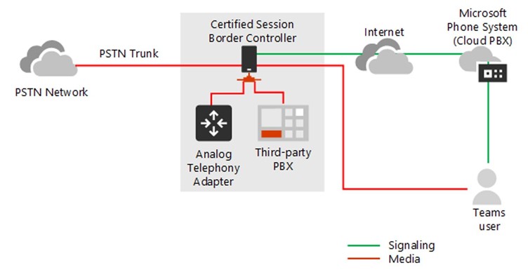 Deuxième cas. Une entreprise doit utiliser un SBC auquel l’interface de routage direct de Microsoft ne peut accéder. Cas courant : il n’est pas possible de fournir une adresse IP publique pour le SBC dans certains sites de l’entreprise.