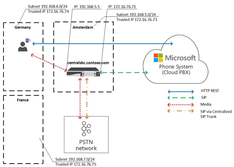 Dans ce cas, si l’utilisateur se trouve dans un endroit interne, l’optimisation des médias locaux fournit toujours l’IP interne du SBC. Voir l’image ci-dessous pour référence, un utilisateur peut se trouver sur un site allemand ou se rendre en France.