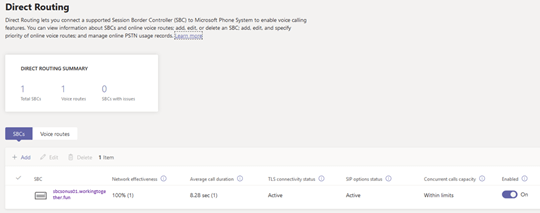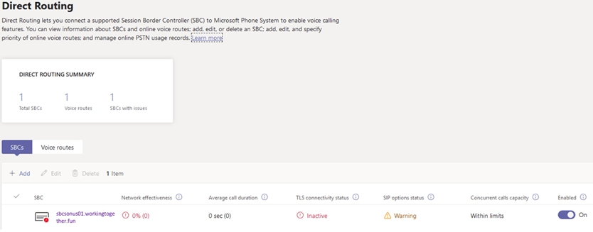 - La passerelle sbcsonus01.workingtogether.fun possède une table de routage des appels qui peut être consultée ci-dessous