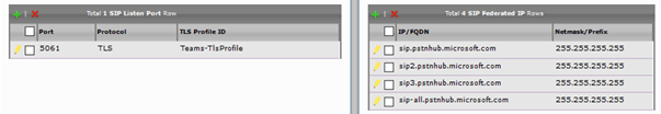 Le port de communication est 5061. Dans notre cas c’est la valeur qui va correspondre au paramétre -SipSignalingPort de la commande New-CsOnlinePSTNGateway. La table Federated IP Row correspond au serveurs Teams (52.114.148.0/52.114.132.46/52.114.75.24/52.114.76.76/52.114.7.24/52.114.14.70) qui sont susceptibles de contacter notre passerelle.