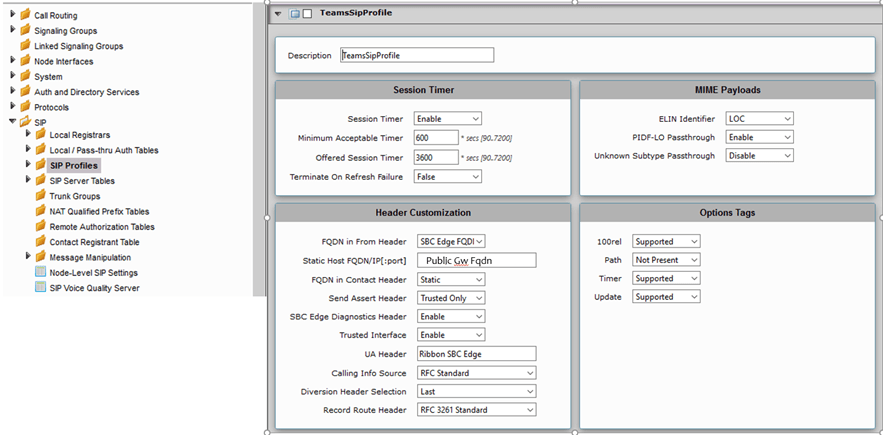 In this step we will create a Sip profile that will describe the protocol options we need to use to interact with Microsoft services.