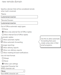 - Créez ensuite votre domaine distant (remote domain) en précisant bien que les transferts automatiques sont autorisés pour ce domaine.