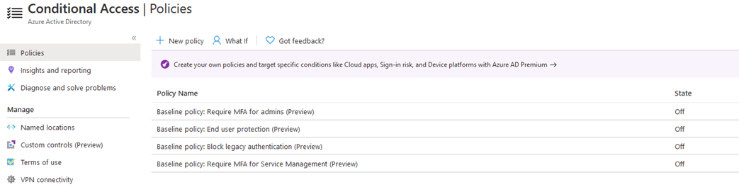 - Les stratégies d’accés conditionnels ne bloquent pas les anciens protocoles d’accés