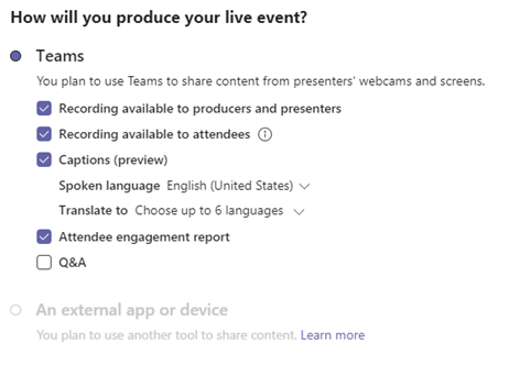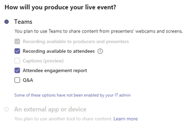 Today while trying to create a Live Event with Microsoft Teams I noticed that the option « An External App or Device » was grayed out.