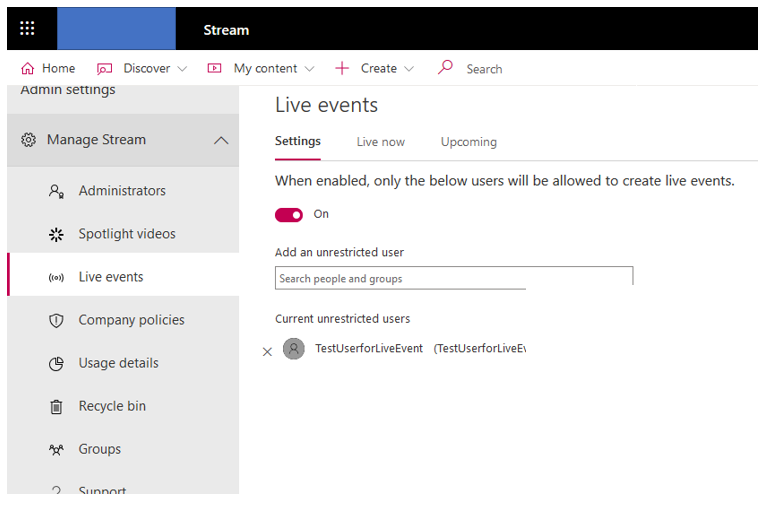 However, the account I use can’t do public live events. So I used another account that has the right to plan a public Live Event and I also see the same problem.