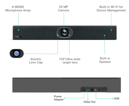 Pour l’UVC40, Il suffit de monter l’appareil sous un écran de télévision, sur un mur ou une table, de le brancher sur votre PC. L’appareil peut être géré à distance par la plateforme de gestion des appareils Yealink en activant le Wi-Fi.
