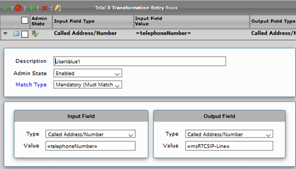 La première ligne illustrée ci-dessous récupère le numéro appelé et le recherche dans l’Active Directory dans le champ telephoneNumber, puis, si elle est trouvée, remplace la valeur originale du numéro appelé (Called Address / Number) par la valeur dans le champ msRTCSIP-Line.