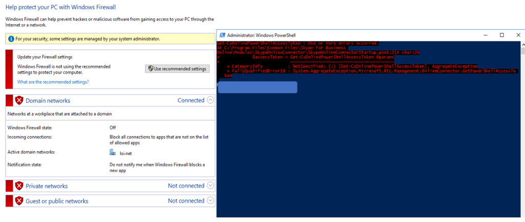 System.AggregateException,Microsoft.Rtc.Management.OnlineConnector.GetPowerShellAccessToken