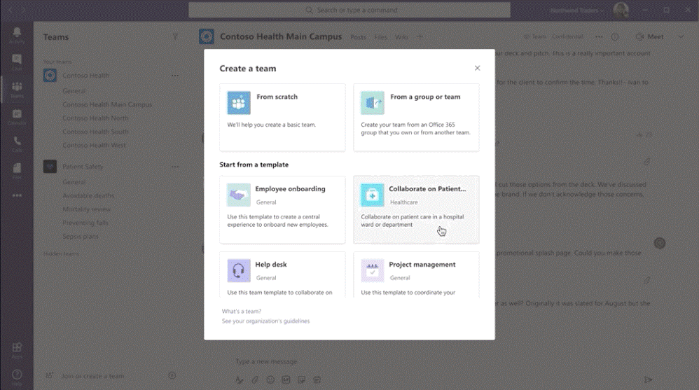 Les modèles d’équipes, désormais généralement disponibles, aident votre équipe à démarrer plus rapidement et à être plus efficace. Choisissez parmi des scénarios commerciaux courants, tels que la gestion d’événements ou la réponse aux crises, et des modèles spécifiques à un secteur, comme un service hospitalier ou une succursale bancaire. Chaque modèle est fourni avec des canaux, des applications et des conseils prédéfinis. Les administrateurs peuvent également créer des modèles personnalisés pour votre organisation, ce qui vous aide à normaliser les structures d’équipe, à révéler les applications pertinentes et à mettre à l’échelle les meilleures pratiques. Pour en savoir plus, cliquez ici.