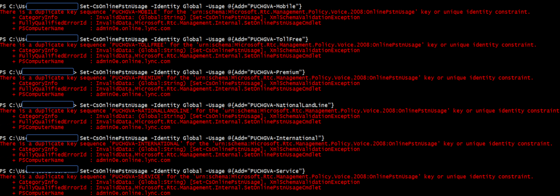 Je vous rassure le PSTN Usage référencé dans la commande existe bel et bien. La prevue est que lorsque j’essaye de le recréer… j’obtiens cela