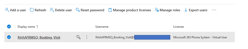 - We have previously created « Resource accounts » to which we have assigned virtual Phone system licenses.