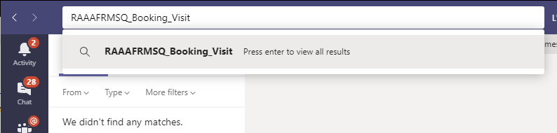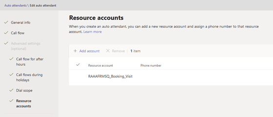 We have created this morning another resource account without phone number (RACQFRMSQ_Booking_Visit) and roughly at the same time 5:15 PM we can see it in the Teams Client./ Nous avons créé ce matin un autre compte de ressource sans numéro de téléphone (RACQFRMSQ_Booking_Visit) et à peu près à la même heure 17h15 nous pouvons le voir dans le client Teams.