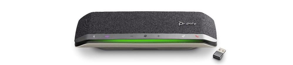 Le haut-parleur intelligent Poly Sync 40 USB/Bluetooth® est conçu pour les espaces de travail flexibles et exigus. Tout le monde peut entendre et être entendu sans manquer un mot grâce à la matrice de plusieurs microphones et au son en duplex intégral. Le Poly Sync 40 fonctionne sur batterie pendant des heures, ce qui permet aux équipes de l’utiliser partout dans la pièce. Vous pouvez également jumeler deux unités pour des réunions plus importantes avec un volume plus important, plus de microphones et une plus grande prise de voix.