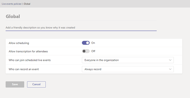 Global (Org-Wide Default) Teams Meeting Policy