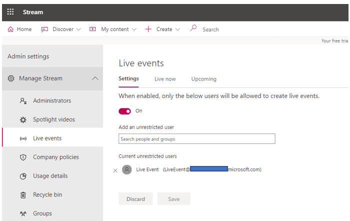 - Permissions to create live events in Stream (for external app or device production).