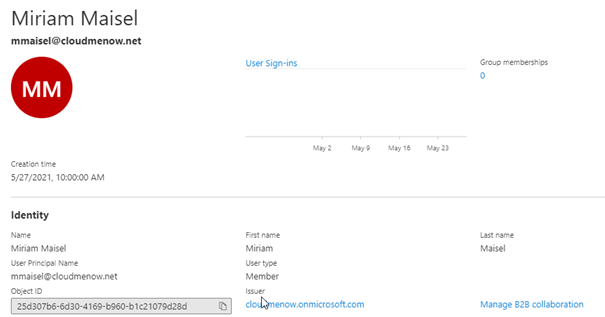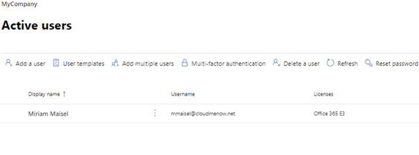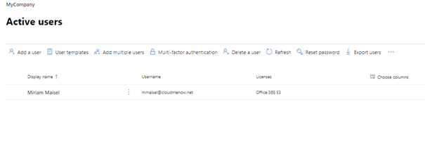 09:45 Création de l’utilisateur Miriam Maisel (MMaisel@cloudmenow.net) / User creation Miriam Maisel (MMaisel@cloudmenow.net)