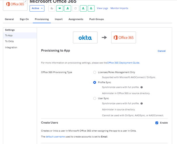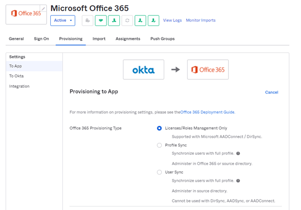 The problem we encountered is to find the best match between OKTA, which once again, in our model, will provide authentication (IDP) and license provisioning, and Azure AD Connect, which will be responsible for managing hybrid identities in the Exchange On prem and Exchange online environments.
