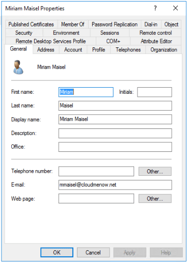 09 :50 Création d’une boite aux lettre locale pour Miss Maisel (Primary Smtp Address = Mmaisel@cloudmenow.net=) / Creation of a local mailbox for Miss Maisel (Primary Smtp Address = Mmaisel@cloudmenow.net=)
