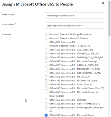 12 :06 Positionnement de la licence O365 Teams pour l’utilisateur / Positioning the O365 Teams license for the user