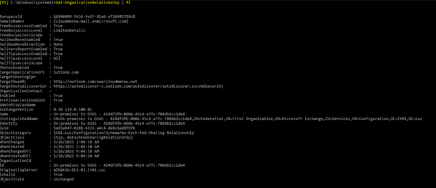 2.5 Get-OrganizationRelationship 14