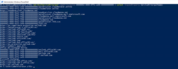 Get-MsolServicePrincipal -AppPrincipalId 00000002-0000-0ff1-ce00-000000000000 | select -ExpandProperty ServicePrincipalNames