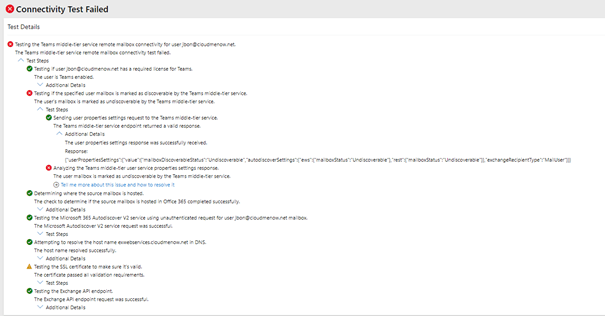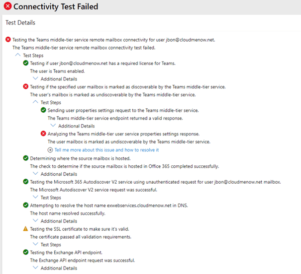 Test-OAuthConnectivity -Service EWS -TargetUri https://exwebservices.cloudmenow.net/metadata/json/1 -Mailbox CloudMailboxUser@cloudmelater.online -Verbose | Format-List [NONE OK]