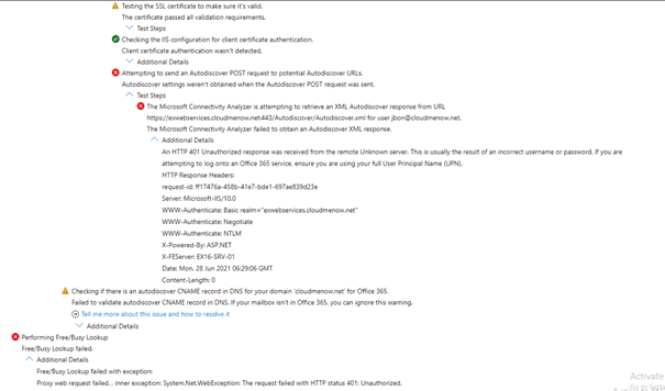 On Premise Autodiscover and Web Service test