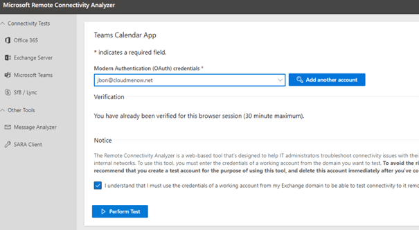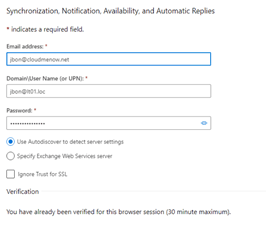 Test-OutlookWebServices -identity jbon@cloudmenow.net -MailboxCredential $C [OK]