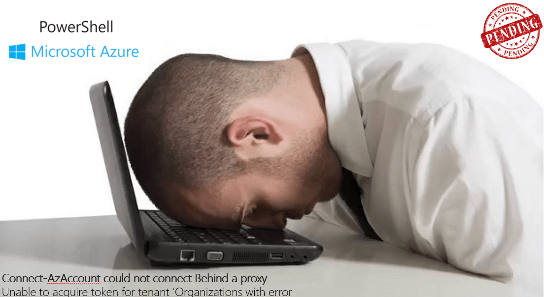 Connect-AZccount is a let command that doesn’t know how to handle proxies. And if you need a proof here it is. From the same workstation connected to the internet through a proxy. The Connect-AZaccount command does not work, the Connect-ExchangeOnline command does. And in powershell 7 in admin mode or not it’s the same thing. Same problem