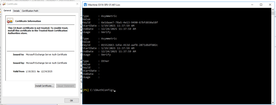 $CertFile = « $env:SYSTEMDRIVE\OAuthConfig\OAuthCert.cer »