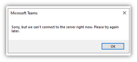 - You receive a Teams error notification that a connection to the server is not possible