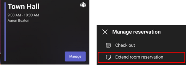Grâce au nouveau bouton « Gérer » d’un panneau Teams, la salle Teams réservée peut désormais être retirée ou libérée directement à partir du panneau en appuyant sur un bouton. Cette fonctionnalité met fin à la réservation de la salle et la remet dans l’inventaire des salles.