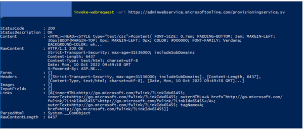 [14:59:12.085] [ 23] [INFO ] TestAadConnectivity: Attempting connection to AdminWebService service: https://adminwebservice.microsoftonline.com/provisioningservice.svc