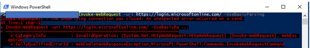 [14:59:54.104] [ 23] [ERROR] TestAadConnectivity: Connection Failed to : AdminWebService. Exception Details: System.Net.WebException: Unable to connect to the remote server —> System.Net.Sockets.SocketException: A connection attempt failed because the connected party did not properly respond after a period of time, or established connection failed because connected host has failed to respond 20.190.129.26:443