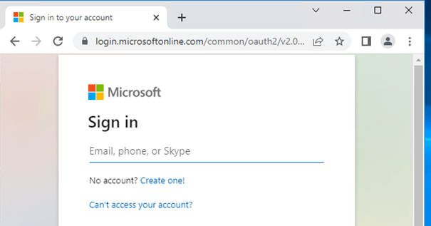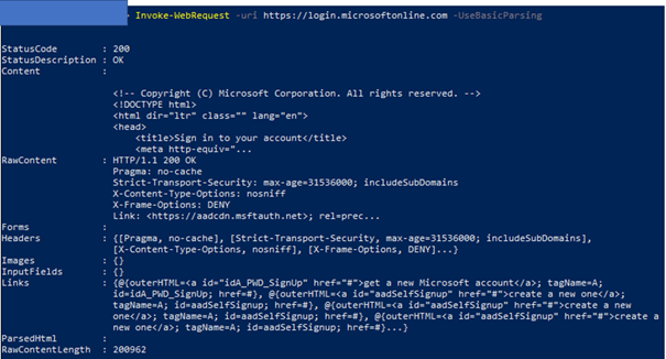 La connexion est possible. J’ai donc testé une autre URL qui doit certainement être utilisée : https://login.Microsoft.com. Quand je teste cela depuis la machine voici ce que j’obtiens.