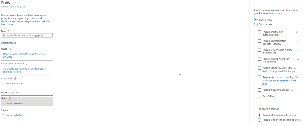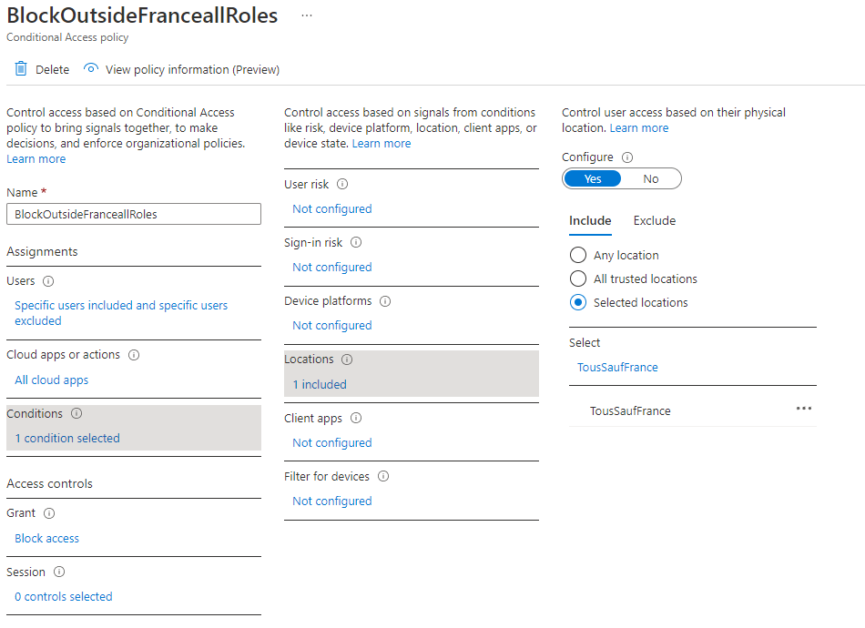 When you start writing them, remember to cover the entire scope of your users. For example, if you define a rule to authorize connections from user workstations anywhere in the world except China, North Korea and Iran, remember to write the « deny » rule for workstations that come from these regions. Conditional access rules do not work like a firewall, i.e. there is no deny ALL rule at the end.