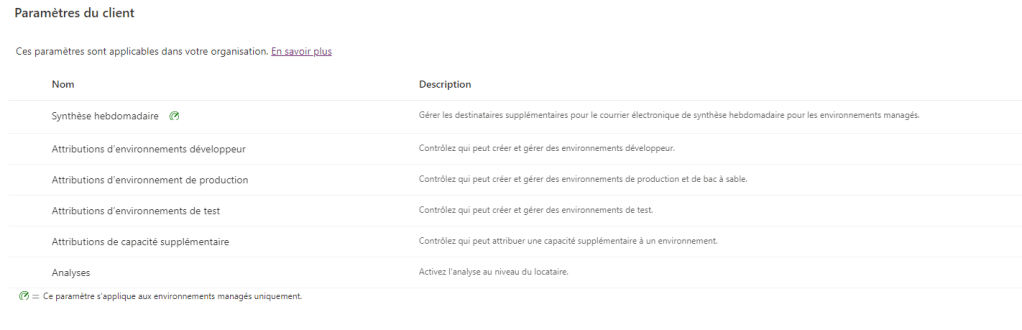 Après avoir chercher un peu sur le Web, j’avoue que je n’ai pas trouvé grand chose de très clair. N’étant pas un expert PowerPlateform difficile de comprendre . par contre j’ai trouvé ceci dans les paramètres de l’admin de PowerPlatform https://admin.powerplatform.microsoft.com/tenantsettings