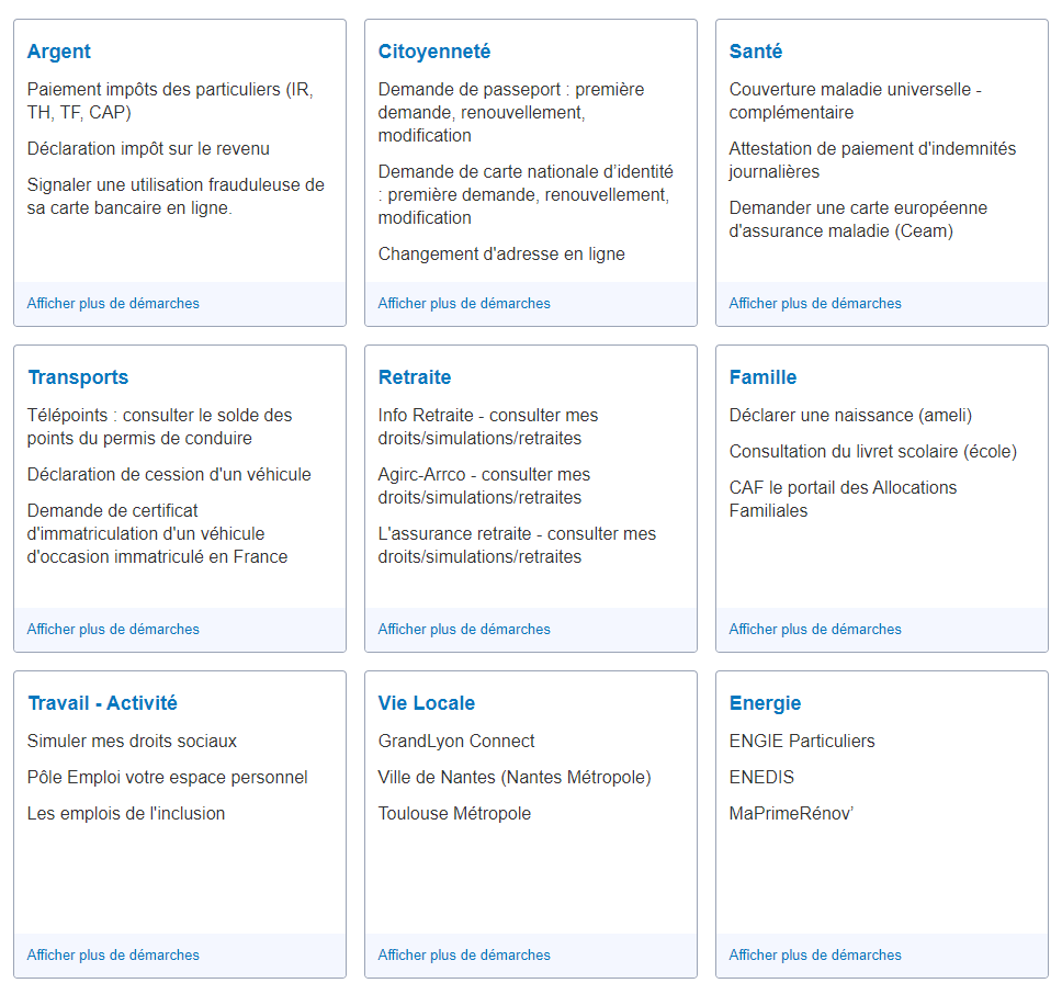 Pour rappel France Connect accessible avec un simple compte et mot de passe vous permet d’accéder à ceci ..