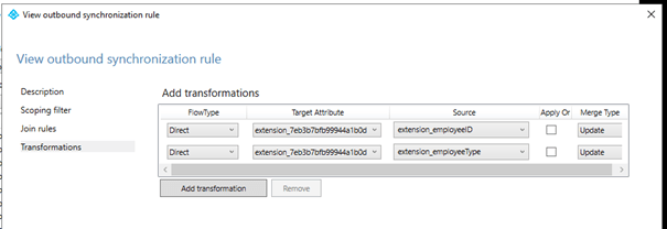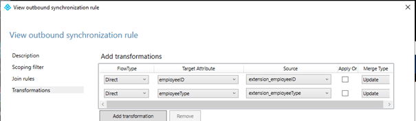 Une fois la configuration faite, exécutez une synchronisation complète (initial) de votre annuaire. Et là vous vous apercevrez que cela ne change pas grand-chose . Le champs Employeeid dans l’Azure AD est toujours vide. Pourquoi ? Mystère. En regardant les règles de synchronisation on peut s’apercevoir qu’une règle en Outbound a été ajoutée.