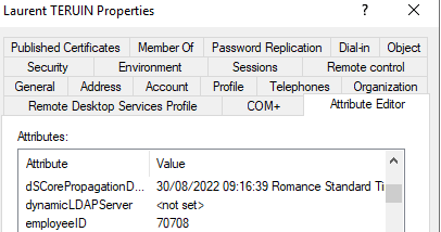 Et ajoute la valeur de l’employee ID sauf .. quelle ne le fait pas. Le champ Employeeid reste vide alors que dans l’Active Directory la valeur figure bien dans l’attribut.