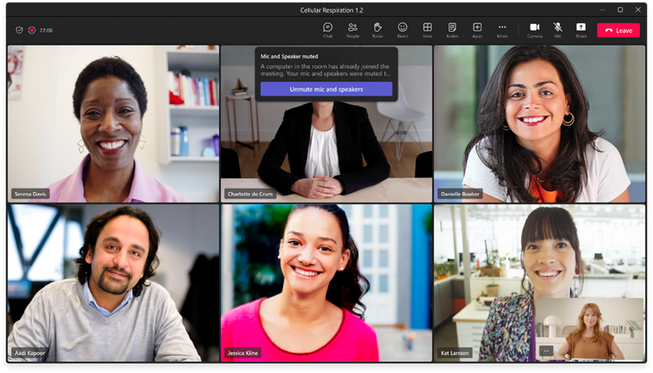 Lorsque plusieurs utilisateurs participent à une réunion Teams dans la même pièce en utilisant l’audio, une boucle de rétroaction est créée, provoquant un écho. Avec cette mise à jour, Teams peut détecter si un autre appareil Teams se trouve à proximité et est déjà inclus avec l’audio dans la même réunion et notifie les utilisateurs qui veulent se joindre. Teams coupe alors automatiquement le microphone et les haut-parleurs de ces utilisateurs. Vous pouvez réactiver l’interrupteur à tout moment s’ils le souhaitent.