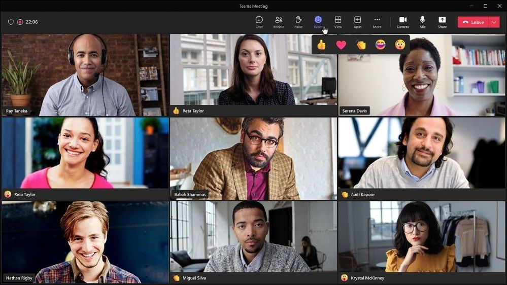 Lors d’une réunion Teams sur un bureau virtuel, vous pouvez vous exprimer à l’aide d’émojis qui apparaîtront à tous les participants afin de rendre les réunions Teams plus inclusives, engageantes et amusantes. Vous pouvez désormais cliquer sur le bouton Réagir dans la barre d’outils de la réunion et vous exprimer à l’aide des réactions en direct J’aime, J’adore, J’applaudis, Je ris et Je suis surpris. Si vous ou quelqu’un d’autre partagez du contenu lors d’une réunion, les réactions s’affichent en bas de l’écran pendant quelques secondes. Les réactions correspondantes apparaissent également à côté du nom des participants qui les ont envoyées.